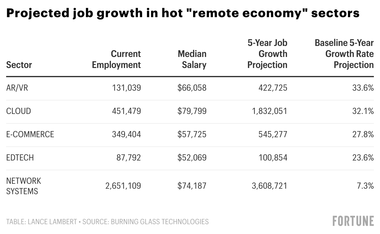 Even before the pandemic, cloud computing was the growth engine driving hiring for tech titans like Amazon, Google, and Microsoft. The pandemic only added fuel to the fire. There are now more than 450,000 workers employed in the cloud computing business. But it’s only going up from here. Burning Glass Technologies expects the cloud sector, which pays a median salary of nearly $80,000, to expand to more than 1.8 million jobs in the next five years. That will be close to triple the entire 540,000 employed by the U.S. utilities industry.