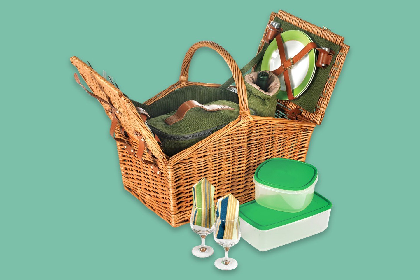 Picnic basket: Fans of alfresco dining will adore this picnic basket for two. The classic double-lid willow basket features all the goods a pair will need for the perfect outdoor meal: eight-inch plates, handblown wineglasses, stainless steel flatware, fabric napkins, zipper-top cooler, cutting board, salt and pepper shakers, and a fleece blanket. Of course, there’s a corkscrew and corduroy wine duffel ready for that bottle of rosé, too. SRP: $265