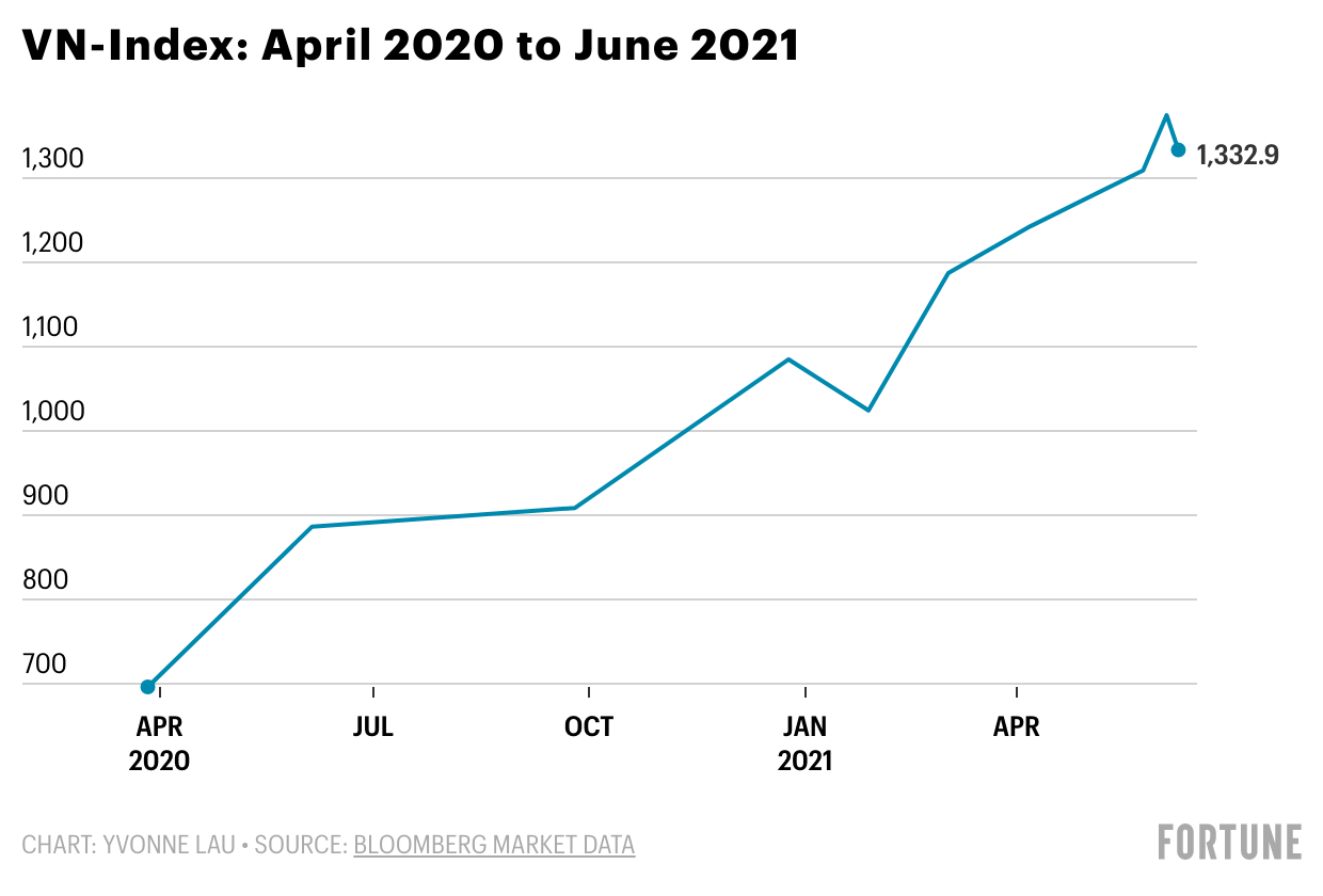 The country’s benchmark VN-Index—which tracks all companies listed on the HOSE—has gained 23% since the beginning of 2021, making Vietnam this year’s top-performing Asia-Pacific market. Driving the rally: retail investors, who have accounted for over 90% of trading volume this year. On average, Vietnam has registered nearly 100,000 new trading accounts every month in 2021.