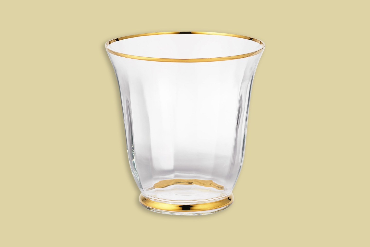 Champagne bucket: Celebrate the newly married couple by popping bottles. Give them this gold-rimmed, hand-blown glass Champagne bucket alongside a bottle of sparkling wine for a truly festive present. When it’s not in use holding bottles of Moët, it makes a statement piece of glassware on the buffet or vase for holding flowers on the dining room table. SRP:$295