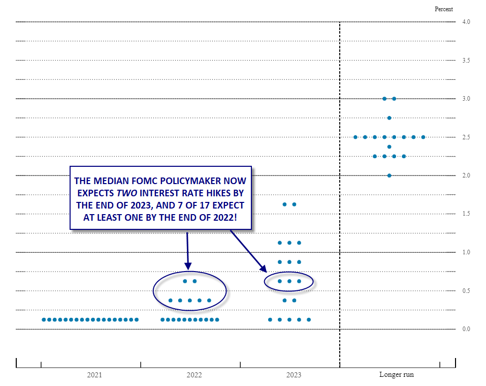 Okay, who among you had two rate hikes by end of 2023 on your FOMC bingo board? Congratulations! Cigars are in the mail.