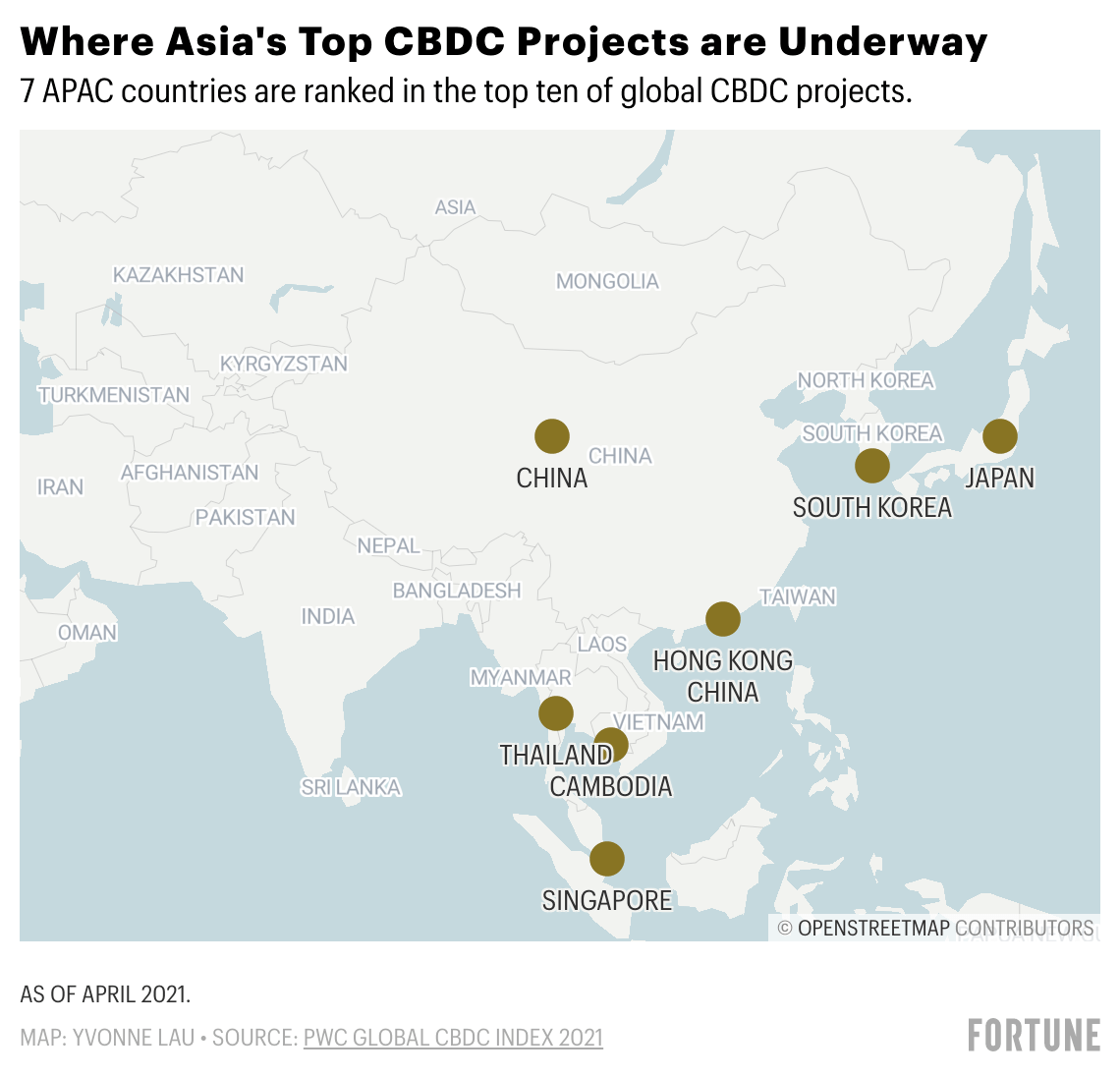 Asia is “by far the most advanced region when it comes to both retail and wholesale CBDCs,” says Henri Arslanian, PwC crypto leader and partner. He says that Asia “probably has the perfect mix of size, resources and knowledge, combined with a willingness to improve the status quo.”