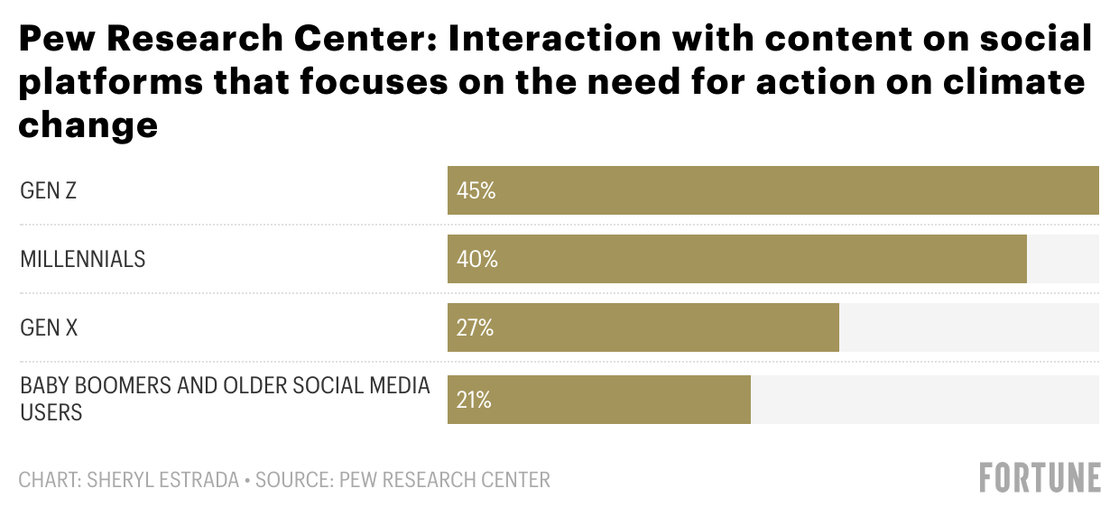As ESG continues to be an area of focus for many companies, Gen Z and Millennial social media users in the U.S. are more likely to engage with climate change content, according to a Pew Research Center report released June 21.