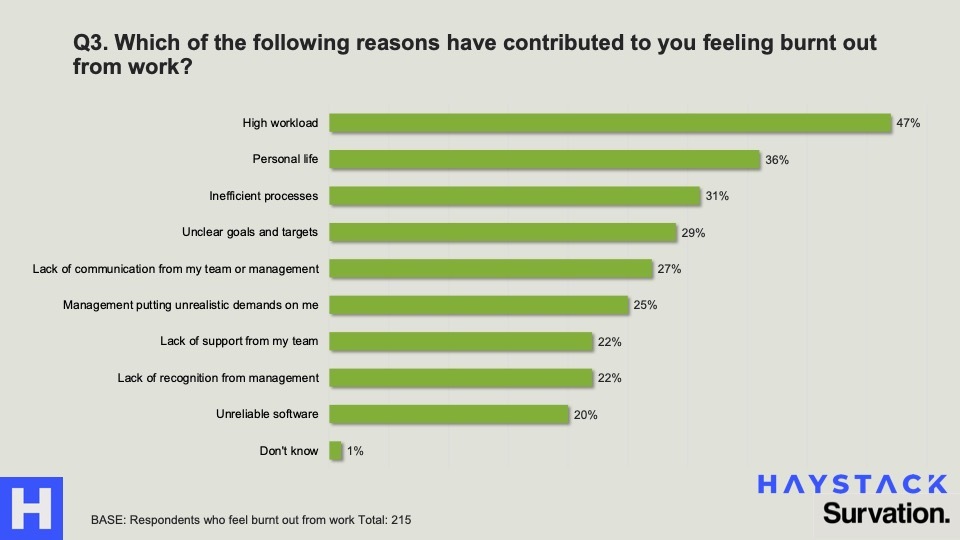 A new study by Haystack Analytics found that 83% of software developers surveyed have suffered from workplace burnout. Almost half (47%) attributed the stress to increased workload.