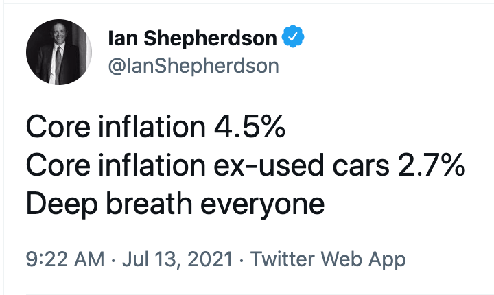 NPR also had an interesting piece today about how recently declining wholesale prices for used cars (those paid by dealers) might support a transitory-inflation argument, and that retail prices may follow suit.