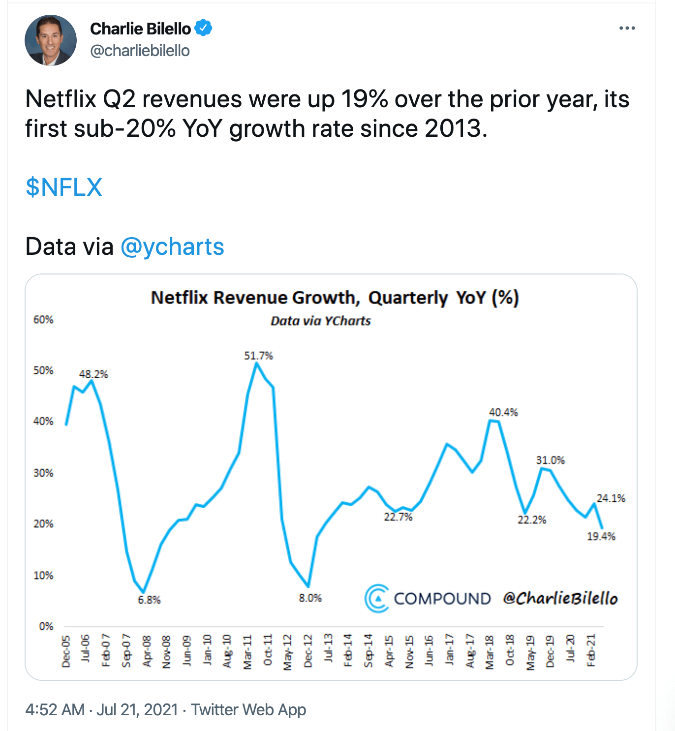 Yes, growth is slowing at Netflix (though not in the Warner household).