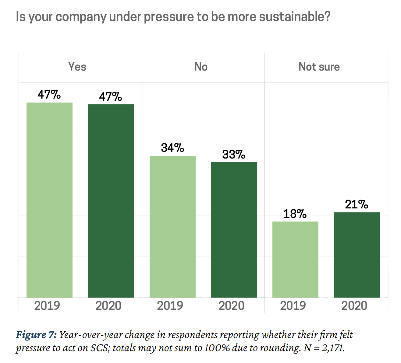 The COVID-19 pandemic did not divert a push for sustainability, according to The State of Supply Chain Sustainability (SCS) 2021. The annual report was recently released by the MIT Center for Transportation & Logistics and the Council of Supply Chain Management Professionals. About 83% of the executives interviewed said that pandemic has either increased SCS activity or raised awareness of its urgency. About 47% of respondents reported in both 2019 and 2020 that their firms experienced pressure to increase SCS. The pressure may stem from 2019 events, including the U.S. wildfires, amplified by the environmental impacts of supply chains in 2020, according to the report.