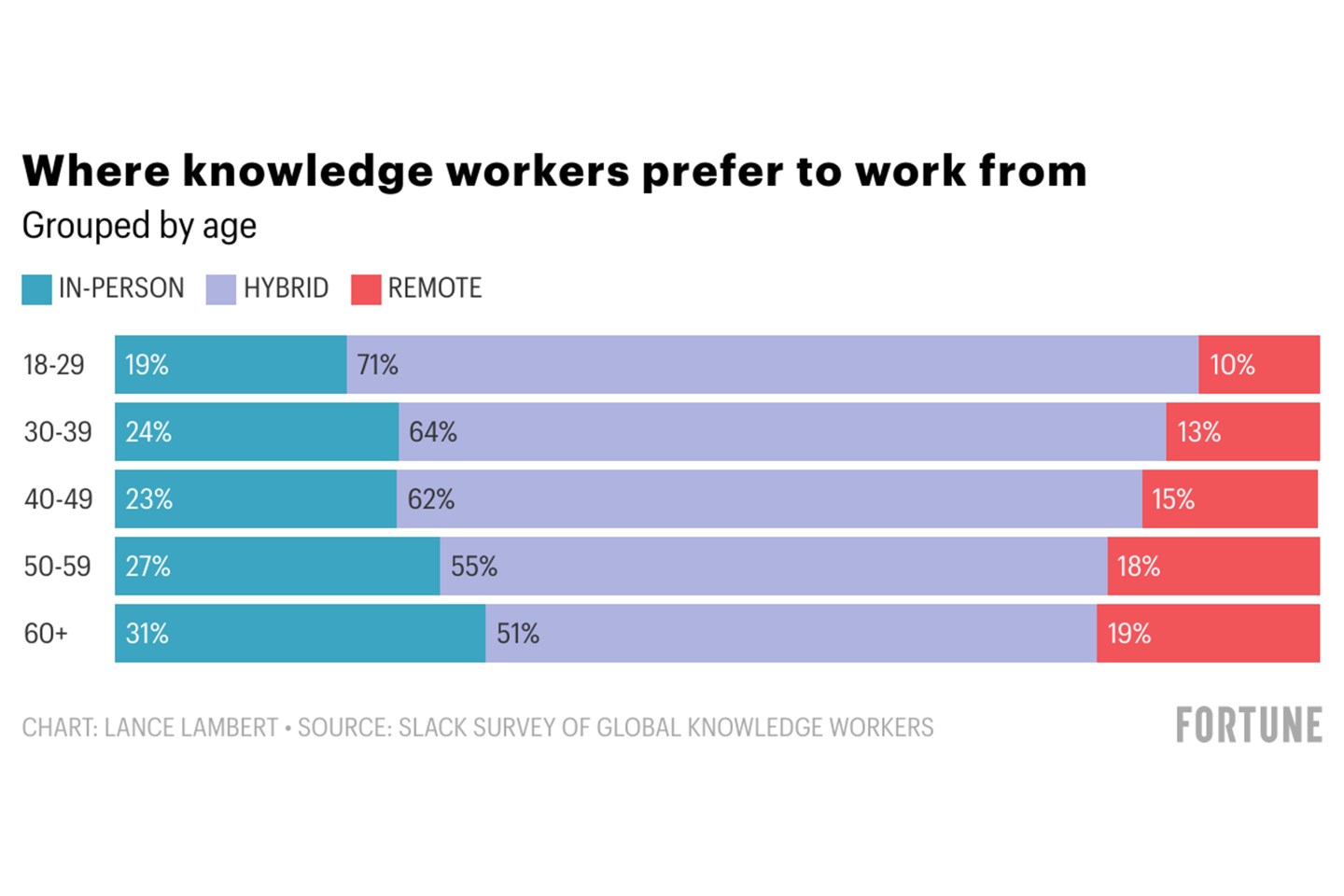 - … of knowledge workers over the age of 60 want to be in-person five days per week. Among workers age 18 to 29, that figure is 19%.