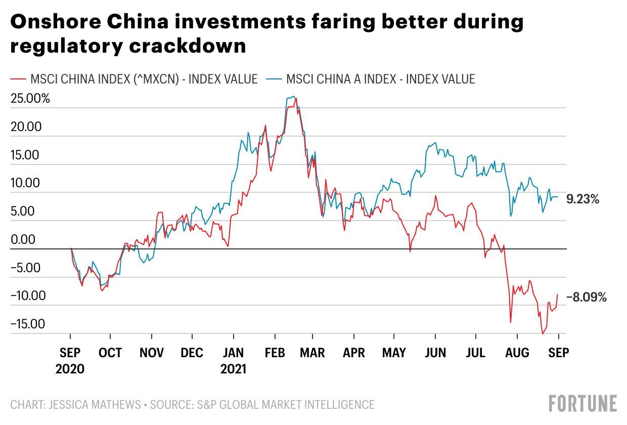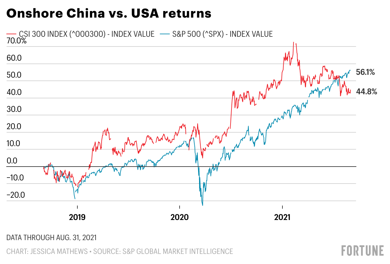 Here’s a second comparison (again, of Chinese companies trading onshore), this time through the end of August 2021: