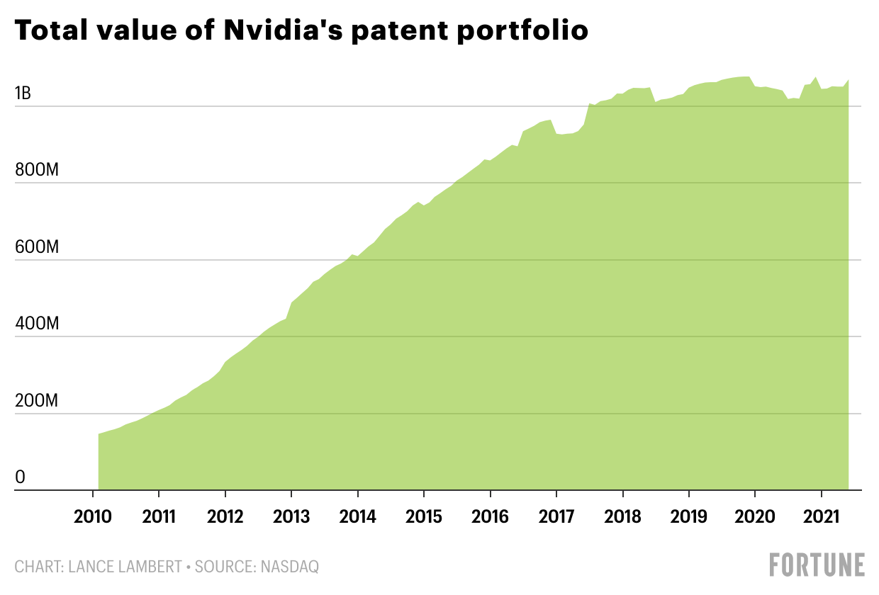 And boy, is the chip maker serious about R&D: Between 2010 and 2021, Nvidia’s total patent value climbed 630%, Nasdaq calculates.