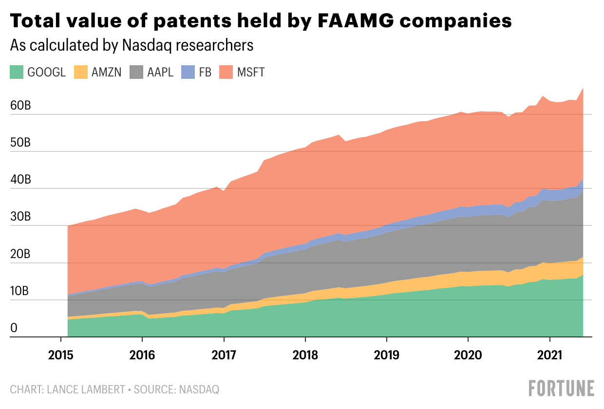 - … gain in the combined patent portfolio of FAAMG companies (aka Facebook, Amazon, Apple, Microsoft, and Google) between 2015 and 2021.