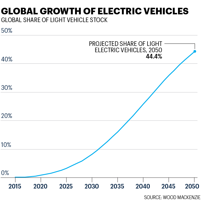 A typical electric vehicle contains around 5,000 battery cells. Although nickel-cobalt-aluminum and iron-phosphate batteries have been used in the past, lithium-ion batteries (LIBs), which also contain nickel, graphite, cobalt, and manganese, have become the de facto choice for many manufacturers owing to their high-energy density and lightweight attributes.