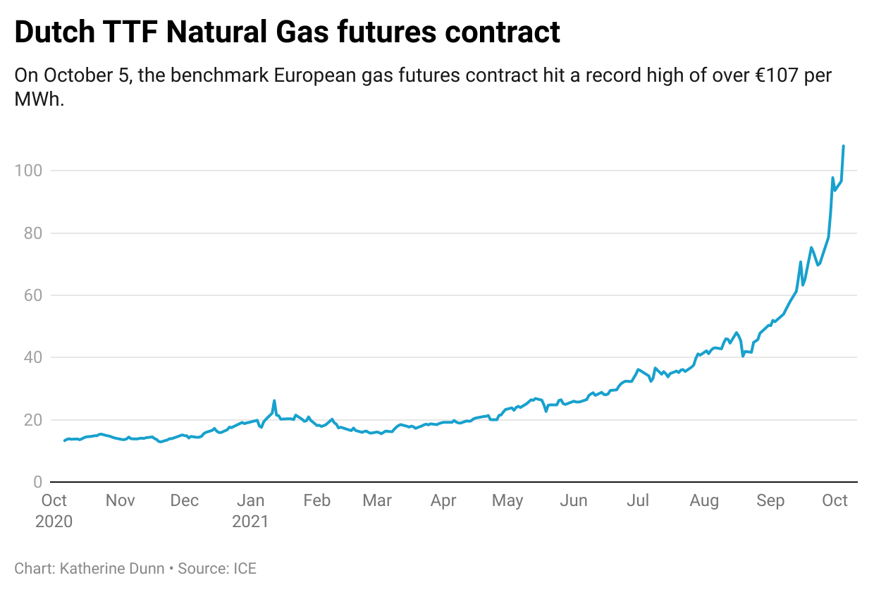 Europe’s natural gas prices have eased in the past 24 hours. But zoom back over the past year, and you’ll see natural gas futures have been one of the most explosive of commodities. The closely watched Dutch TTF gas futures are up nearly six-fold year-to-date. And it’s not even winter yet! Meanwhile, here’s the latest on lumber.