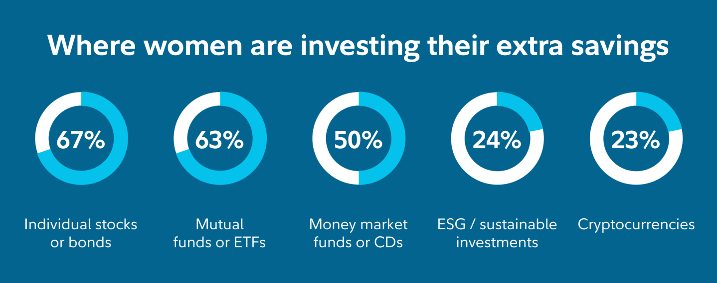 Fidelity Investments' 2021 Women and Investing Study released on October 8 found 67% of women report they are now investing savings they have outside of retirement accounts in the stock market. This represents a 44% increase from 2018, according to Fidelity. About 71% of millennials are investing outside of retirement, compared to Gen X (67%), and baby boomers (62%). Women surveyed are investing the most in individual stocks or bonds (67%), and 23% are investing in cryptocurrencies. The findings are based on a nationwide survey of 2,400 American adults (1,200 women and 1,200 men) ages 21 and older. Respondents have a personal income of at least $50,000 and are actively contributing to a workplace retirement savings plan, according to Fidelity.
