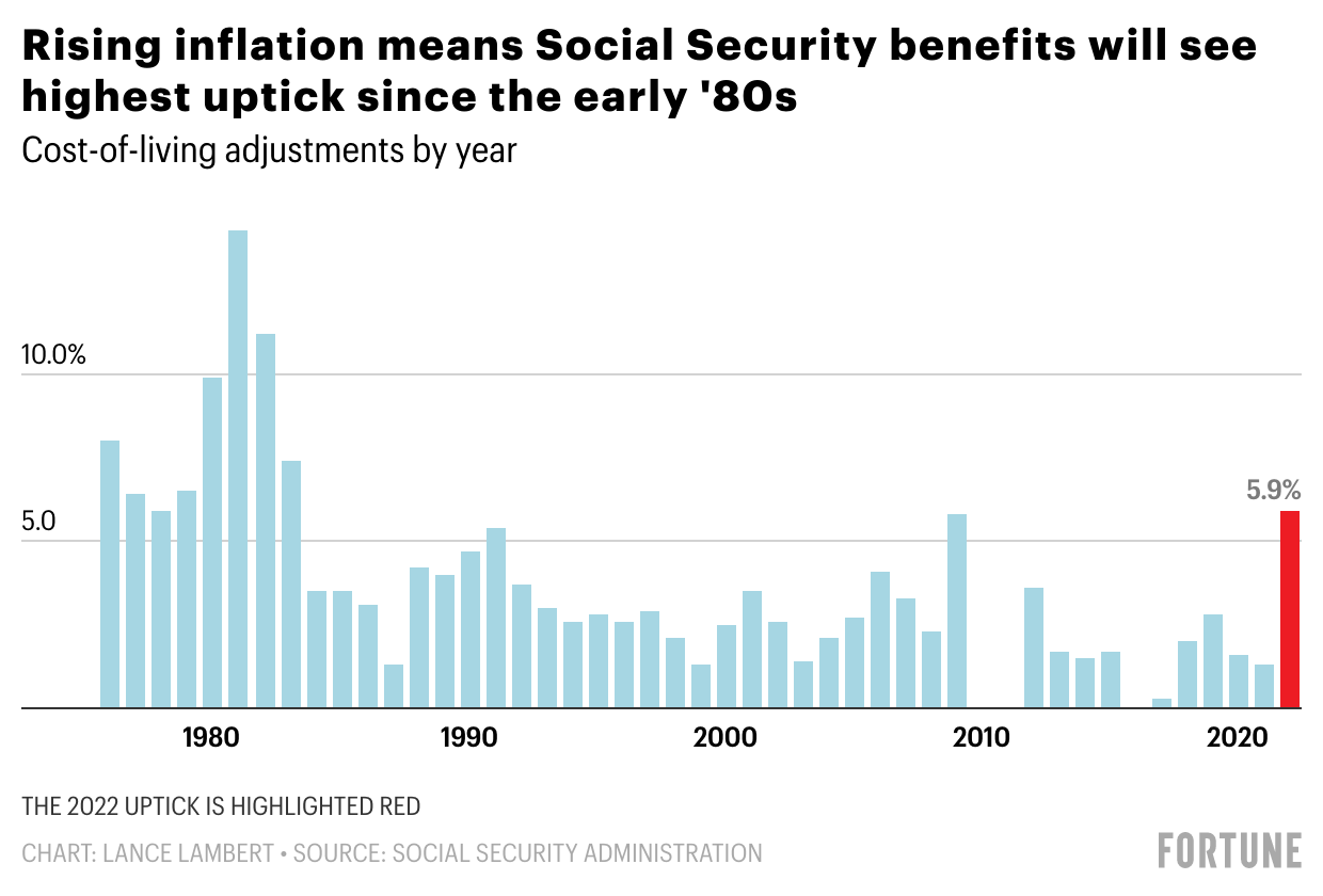 On Wednesday, the Social Security Administration announced more than 70 million Americans will see their benefits rise 5.9% next year. That’s up from 1.3% in 2021, and 1.6% in 2020. It also marks the biggest uptick since the 7.4% jump in 1983.