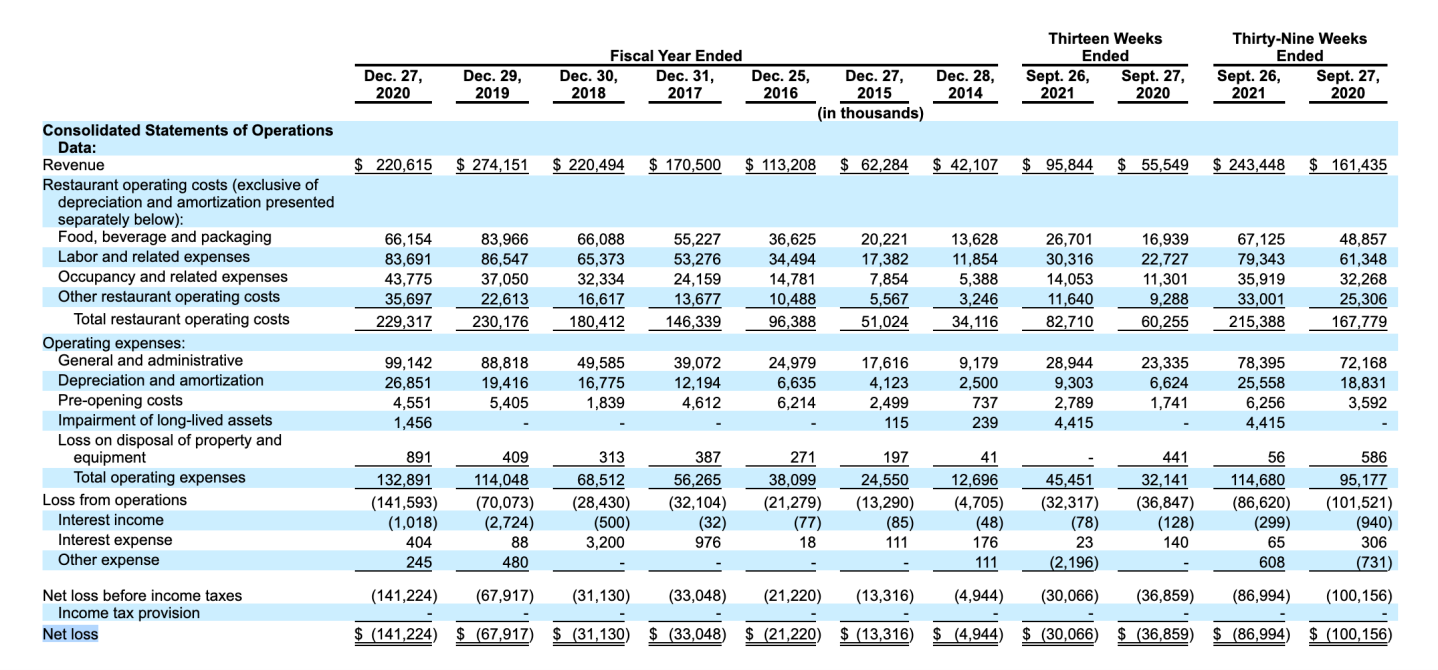 Meanwhile, its CEO, Neman, was telling publications that the salad company was also posting a profit. Articles in Inc. Magazine, Forbes, and Vox’s Recode all pointed to a company with a bottom line in the black. This week, figures within its income statement from its first IPO filing on Oct. 25 show that the company hasn’t ever been profitable, or at least, not since 2014. Most recently, in the 12 months ending Dec. 27, 2020, the company reported a net loss of more than $141 million, after a net loss of $68 million in 2019.