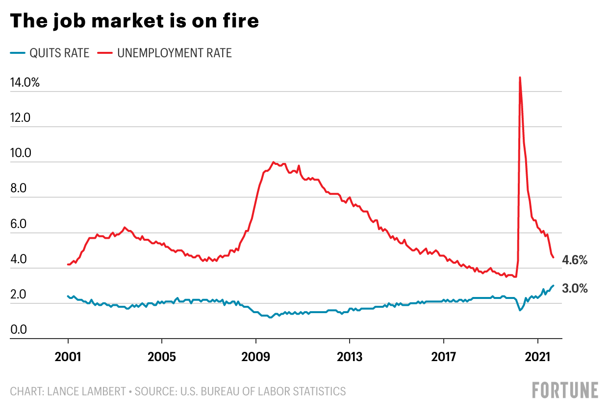 The pandemic has led millions of workers to leave their jobs, in what’s being called the Great Resignation, contributing to a growing labor shortage. Although there is a job opening for every American worker looking for employment, 7.4 million are without work as of October, according to the U.S. Bureau of Labor Statistics. But the sky-high number of quits has less to do with job availability than it does with a change in workers’ priorities, after a shock as life-altering as the onset of the pandemic, reports Fortune’s Megan Leonhardt—and some of the workers may not be coming back.