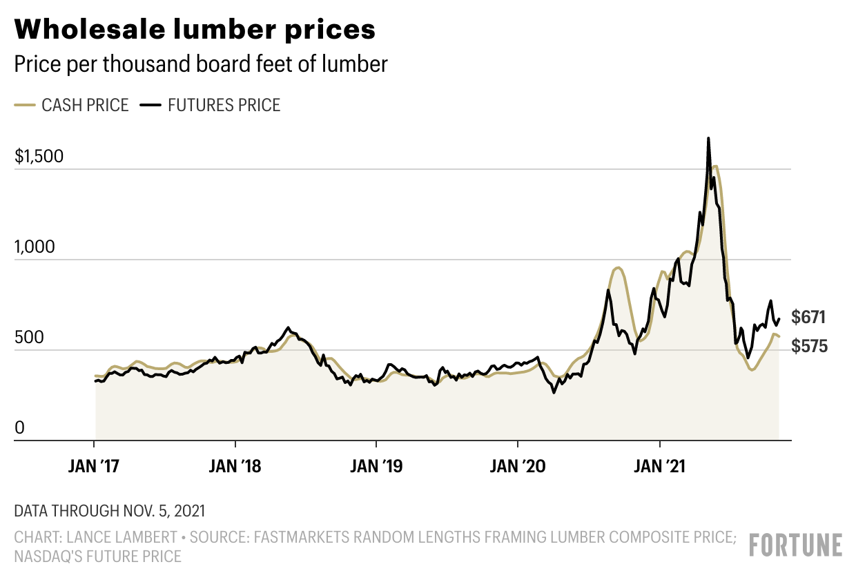 “There is some concern about whether homebuilding can sustain its 2021 pace amid inflationary pressures and various threats to the economy,” Shawn Church, editor at Fastmarkets Random Lengths, told Fortune.