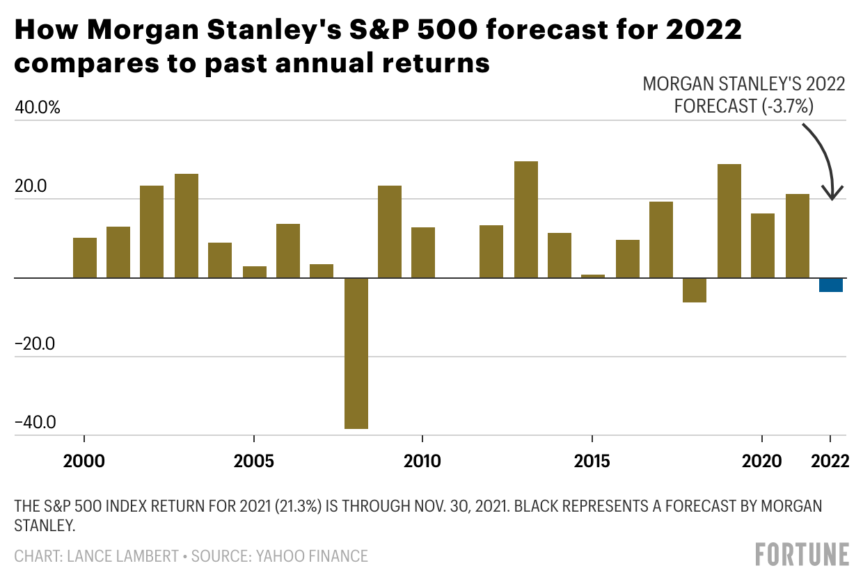 But where is the stock market headed in 2022? To get an idea, Fortune reviewed forecast models published by Bank of America, Goldman Sachs, JPMorgan, and Morgan Stanley.