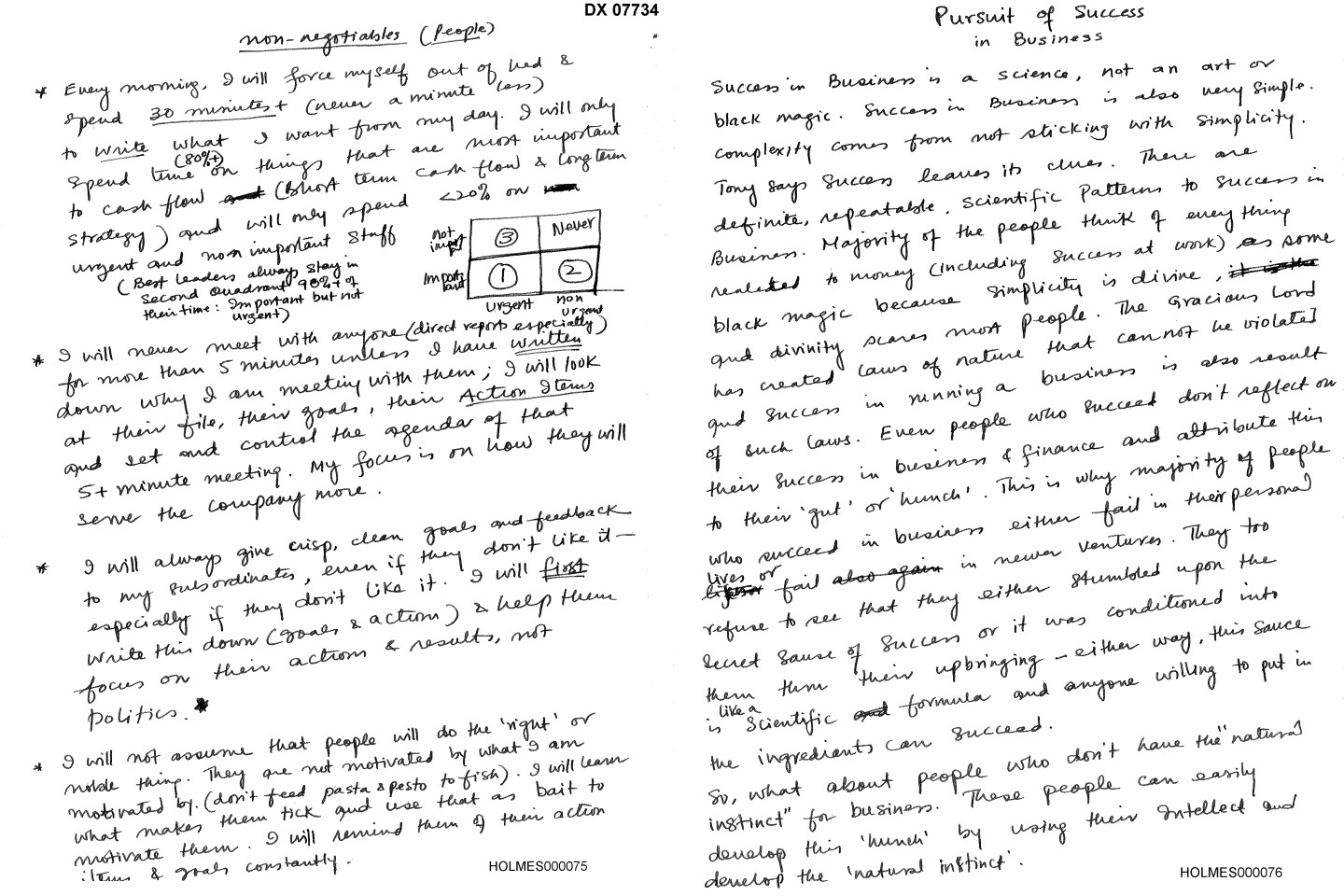 As part of her defense, Holmes’ legal team submitted several documents, one of which Holmes said was handwritten instructions to her from Balwani on how to live and lead her business, the Wall Street Journal reported.
