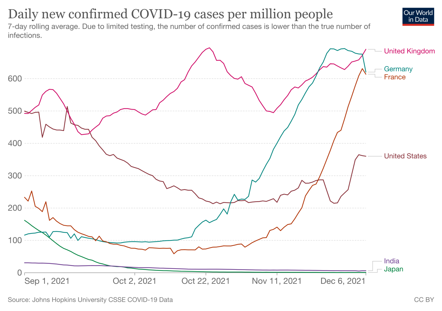 Despite Japan’s recent success in reducing infections and deaths, the government was still swift to react to the appearance of the omicron variant, closing the nation’s borders to new entries by foreigners and limiting the number of Japanese nationals who can return home. The clampdown came just three weeks after it had begun lifting its pandemic border restrictions, which have been some of the strictest in the developed world.