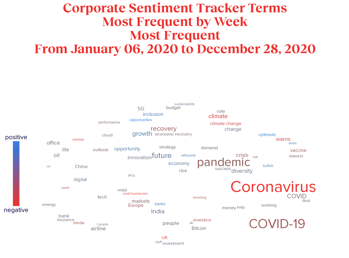 - … the share of weeks in 2020 that “COVID-19”, “coronavirus”, or “pandemic” was the most frequently used term by business leaders.