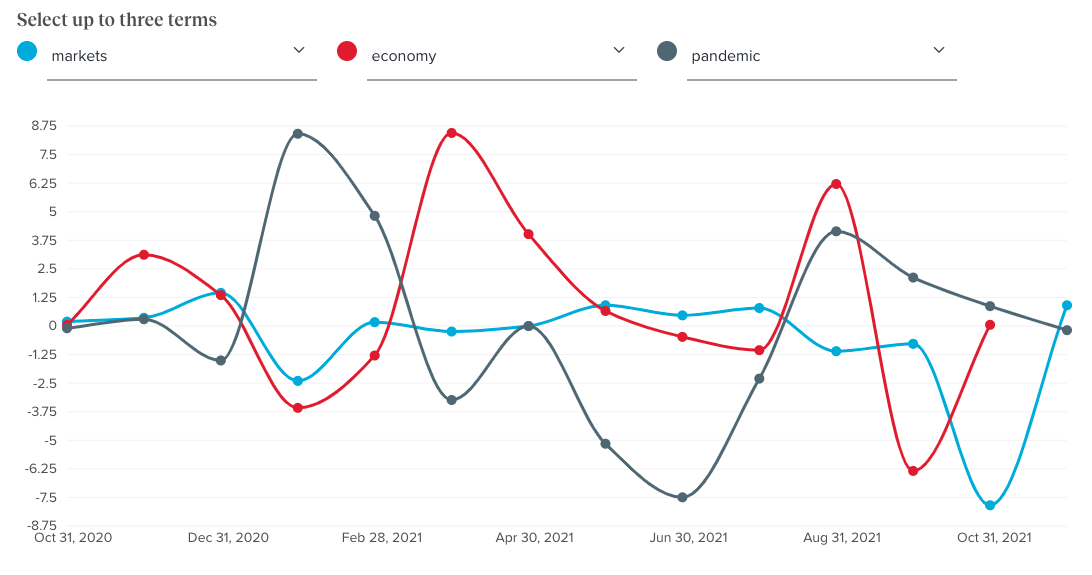 - … the share of weeks in 2021 that “growth” was the top term. It was followed by “future” (31%) and “inflation” (16%).