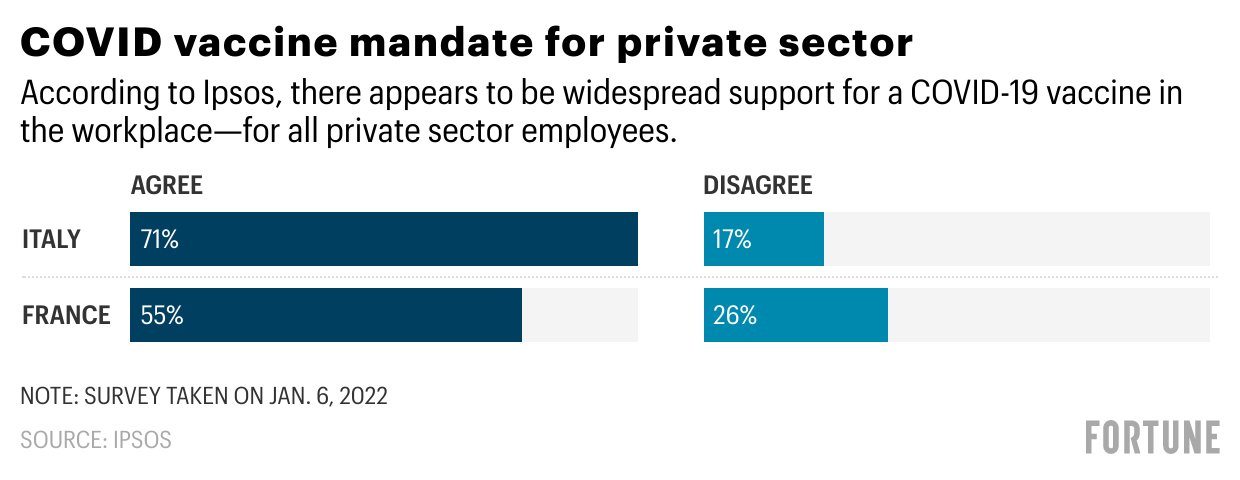 “There are very, very few people who are screaming” about new mandatory COVID-19 vaccine rules, says Andrei Postoaca, CEO of Ipsos Digital, speaking to Fortune from his home in the South of France. “I would have expected in a country like France to see people who were vaccinated saying, ‘I don’t want the country to mandate it.’ But this does not seem to happen,” he says. “The fear and acceptance of the seriousness of this is above all the opinions about what the government should do.”
