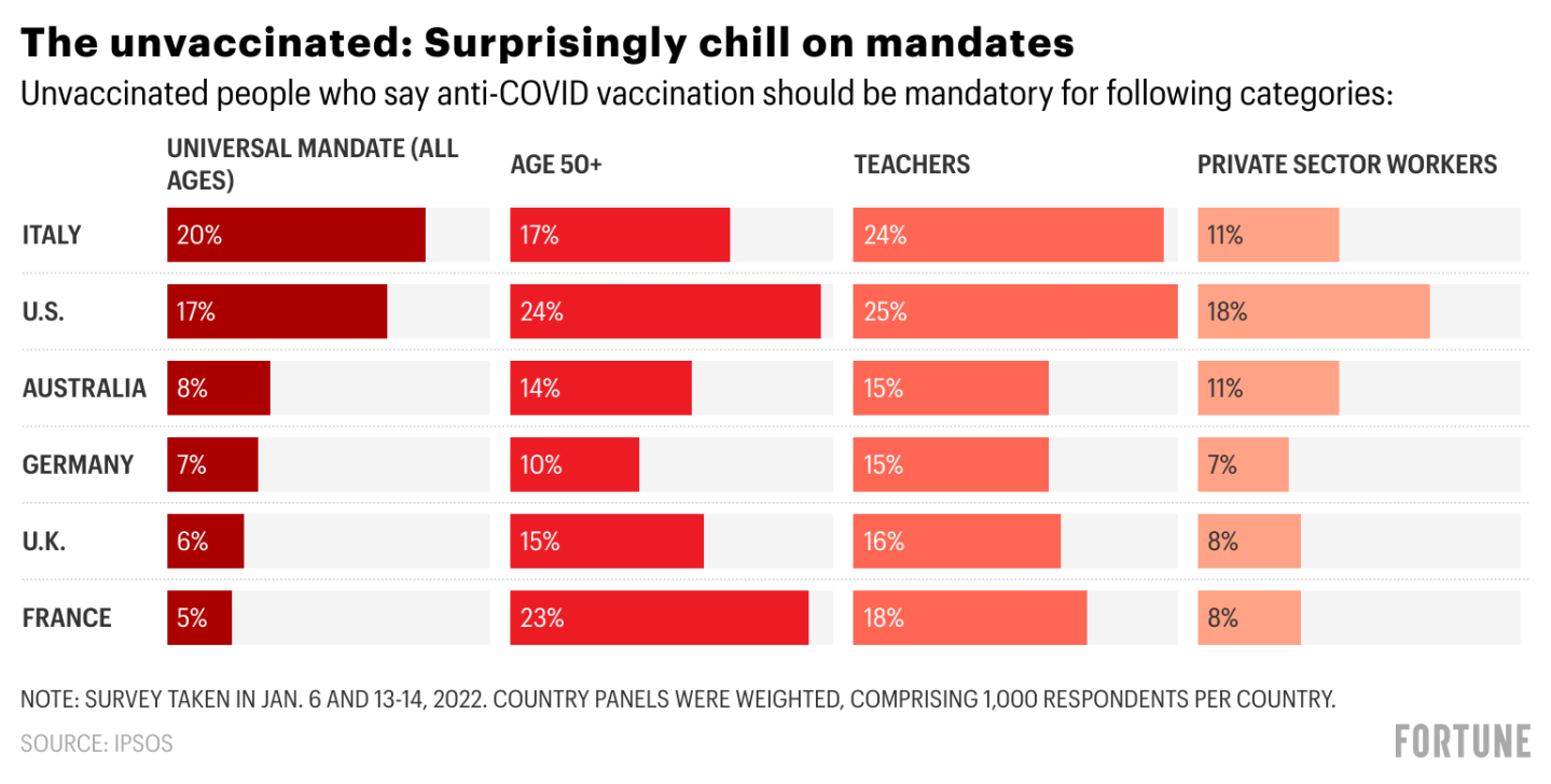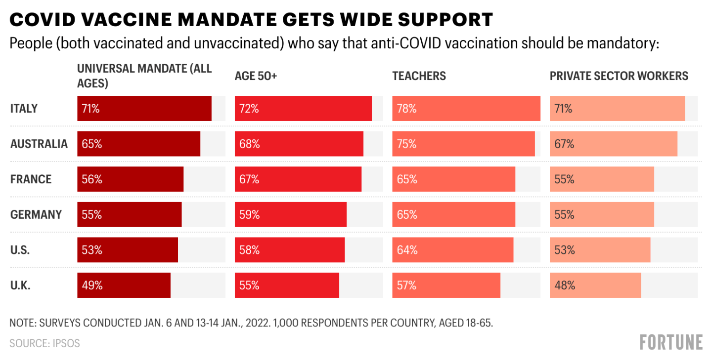 Earlier this month, Ipsos conducted surveys in Italy and France to gauge the support levels among the populations there for the tough new vaccination mandates that were just introduced. The polling firm shared the data exclusively with Fortune, and the findings surprised not only the pollsters, but also Fortune readers.