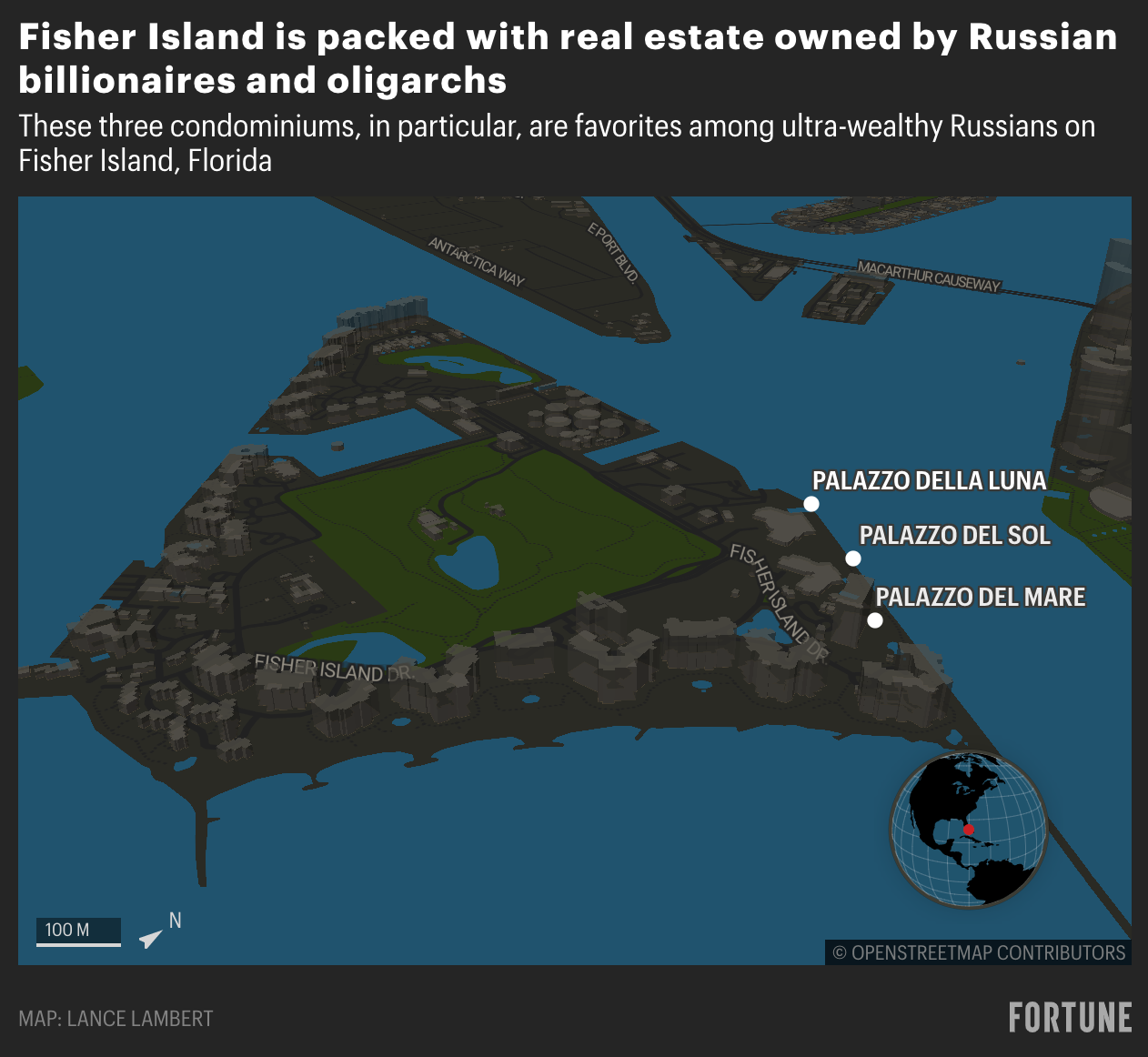 Lenz also has Russian clients who are interested in off-loading property they own on Fisher Island. Located just off the shore of Miami, the island, which is dotted with luxury condominiums, has become an absolute hotbed for Russian billionaires and oligarchs. In 2017, a Russian buyer snagged the largest penthouse at Fisher Island’s Palazzo del Sol—a luxury condominium where Russian billionaire Aras Agalarov used to have a residence—for $31 million. Just last month, Russian hockey star Ilya Kovalchuk bought a $8.5 million condo at Fisher Island’s Palazzo Della Luna. Those two buildings, along with the island’s Palazzo Del Mare—where Russian businessman Igor Olegovich Nesterenko sold his five-bedroom unit last month for $21 million—in particular, are known for being sought-after by wealthy Russians.