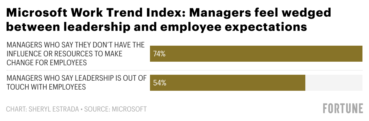 Microsoft Corp. released its second annual Work Trend Index report on March 16. Although, "culture will stand or fall with managers," one of the findings is they feel caught in the middle of meeting the needs of both leadership and employees, according to the report. About 50% of leaders surveyed said their companies are planning a return to full-time in-person work in the year ahead. However, flexible work is important to employees. About 52% of respondents said they are likely to consider shifting to hybrid or remote work in the year ahead. Fifty-four percent of managers said leadership at their companies is out of touch with employee expectations, and 74% said they don't have the influence or resources to drive change for their teams. The findings are based on a survey of 31,102 full-time employed or self-employed workers across 31 market, conducted by Edelman Data x Intelligence.