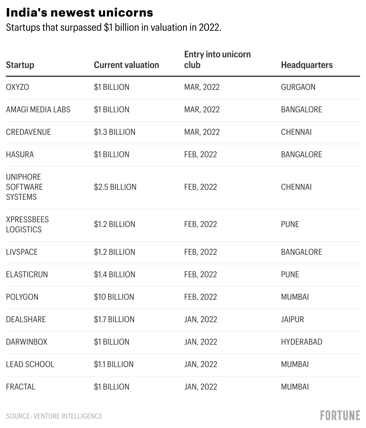 India now has94 unicorns total, with ed tech firm Byjus leading the pack. Byjus’s valuation of $22 billion—reached earlier this month after a $800 million funding round from Sumeru Ventures, Vitruvian Partners, Blackrock, and company founder Byju Raveendran—is the country’s highest.