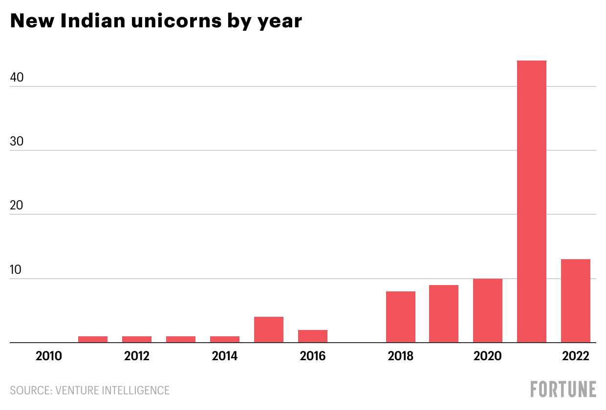 At this point last year, India had minted five unicorns; between October and December last year, it minted 15. For all of 2021, India added 44 firms to its unicorn ranks, easily dwarfing the 37 firms that had hit the $1 billion valuation milestone in the previous decade combined.