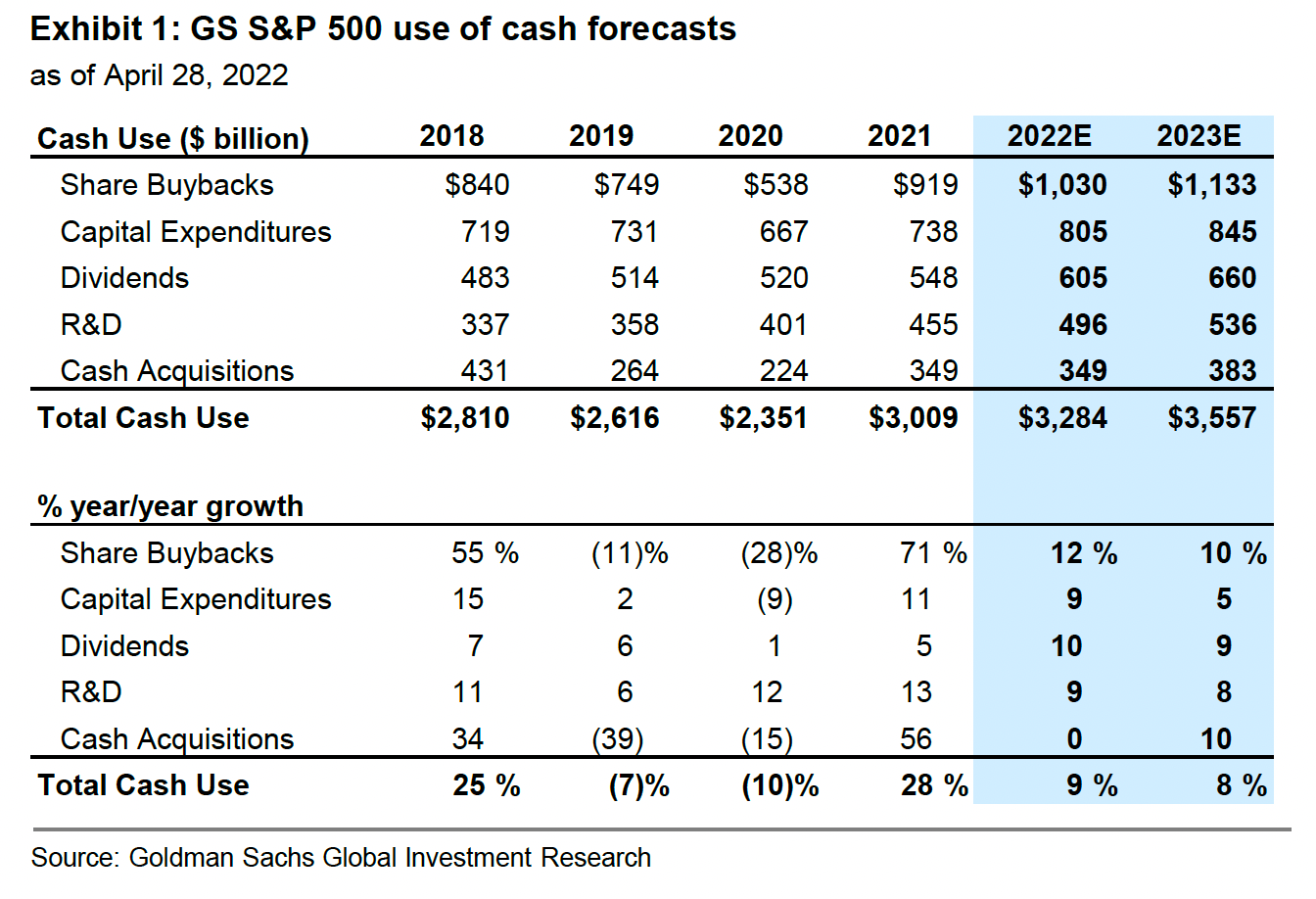 Here's the full Goldman breakdown of where S&P 500 giants will be putting their money.