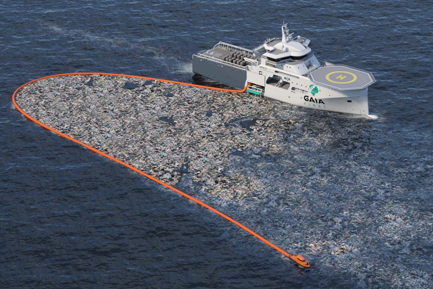 Valenti is president of Gaia First, a Paris-based environmental protection NGO that plans to do just that. They’re working with a Norwegian shipbuilder, Breeze Ship Design, and RINA, the Italian marine certification and engineering specialist, to develop a vessel that can remain out at sea perpetually, working round the clock to collect the trash and put it to good use.