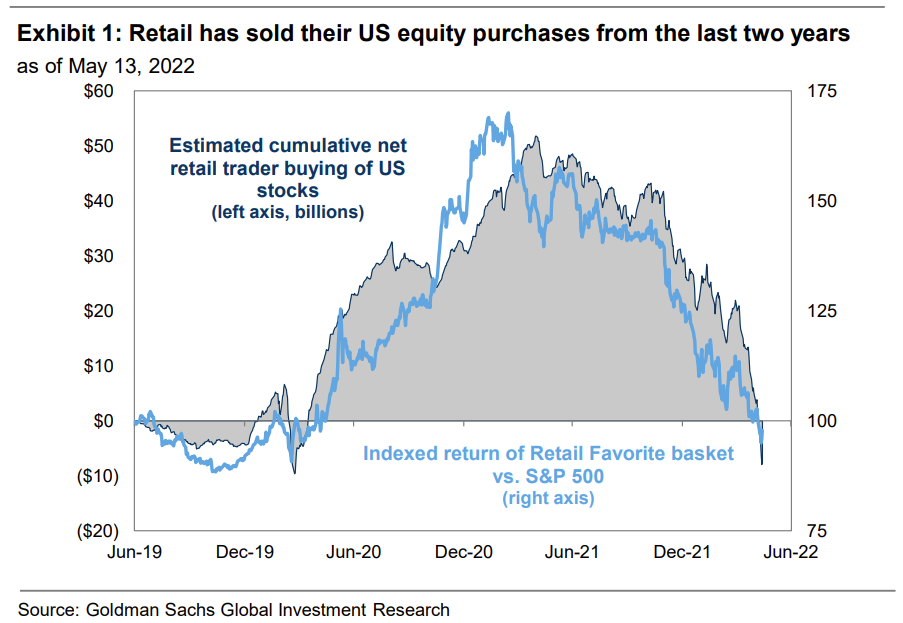 Goldman Sachs analysts, led by David J. Kostin, revealed in a Tuesday research note that retail investors have sold most of their U.S. stock purchases from the last two years. And over the last seven weeks alone, $26 billion has flowed out of U.S. equity ETFs and mutual funds, which are often traded by retail investors.