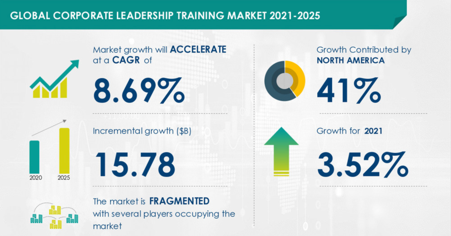 The corporate leadership training market share is expected to increase by $15.78 billion by 2025, with a compound annual growth rate (CAGR) of 8.69%, according to Technavio's recent market study. It's estimated that North America will register the highest growth rate of 41%. The study also found that gamification in corporate training is the major trend influencing the market growth.