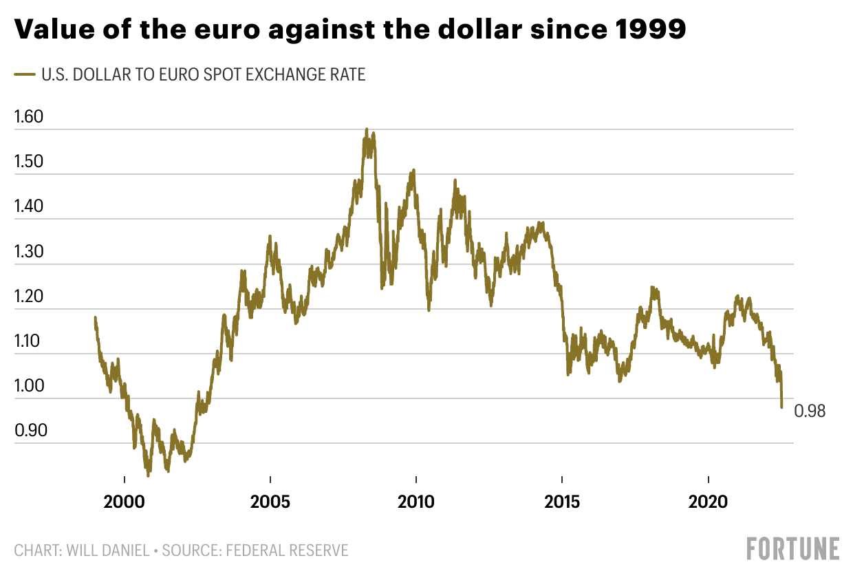 For Americans, the dollar’s rise should help to ease the pain caused by four-decade high inflation, but for Europeans, the sinking value of the euro will make traveling more difficult and exacerbate the effect of rising consumer prices.