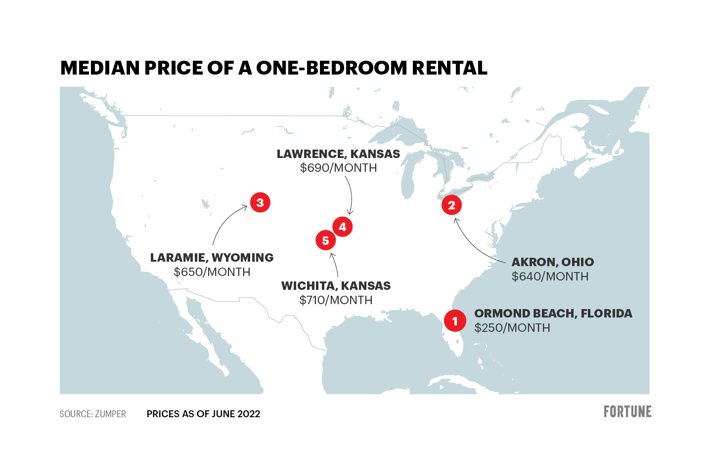 After analyzing data for more than 300 cities from rental platform Zumper, and comparing it to the latest Cox Automotive and Moody’s Analytics Vehicle Affordability Index, Fortune found five cities where the typical monthly car payment of $712 exceeded the median rent for a one-bedroom apartment in each of those places in June.
