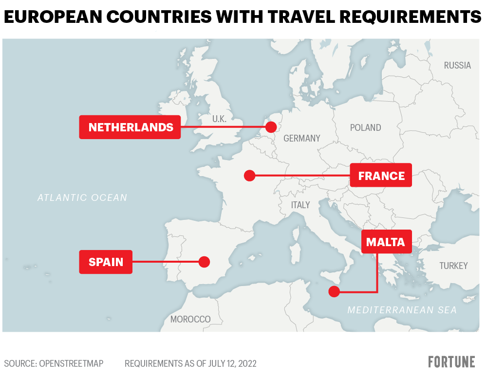 Like France and Spain, Americans hoping to travel to the island nation of Malta will need to show proof of vaccination, proof of recent recovery or a negative COVID test. Eligible negative tests include a PCR test within 72 hours of arrival, or a negative rapid test within 24 hours. This does not apply to children under 12, who are exempt from having to present a proof of vaccination or negative test.