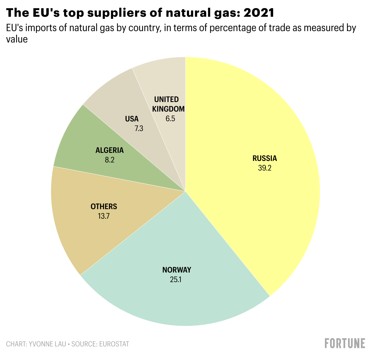 Russia supplies around 40% of Europe’s natural gas. Last year, the country delivered 155 billion cubic meters of gas to the continent.