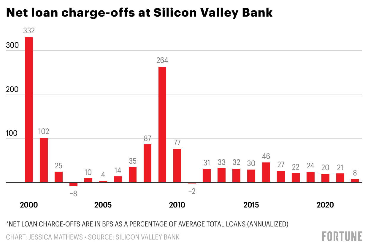 In the second quarter of 2022, Silicon Valley Bank said that it had $22 million in gross loan charge-offs (a charge-off is when a bank considers a loan a loss)—$20 million of which the bank hadn’t reserved for. That’s because some of the early-stage tech and life sciences or healthcare companies the bank works with were struggling to find capital or liquidity. One of those clients, in particular, failed to pay $6 million.