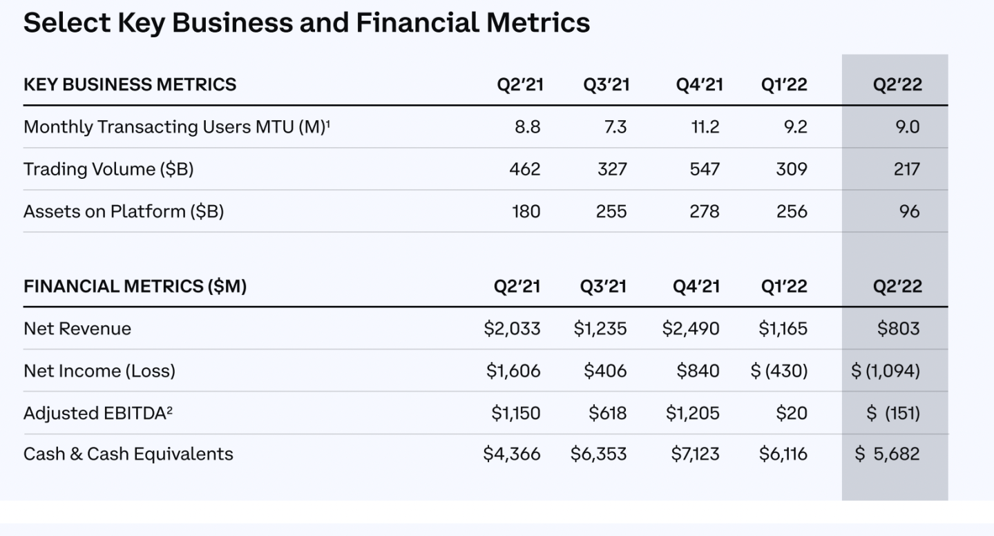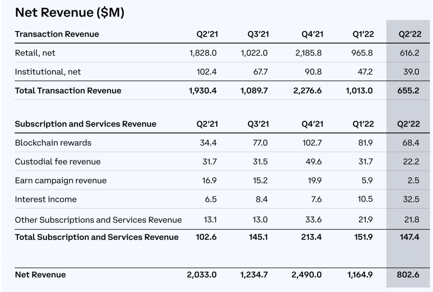 “We continue to take a long-term view and remain focused on building for the future. Q2 was a test of durability for crypto companies and a complex quarter overall. Dramatic market movements shifted user behavior and trading volume, which impacted transaction revenue,” said the company in a letter to shareholders.