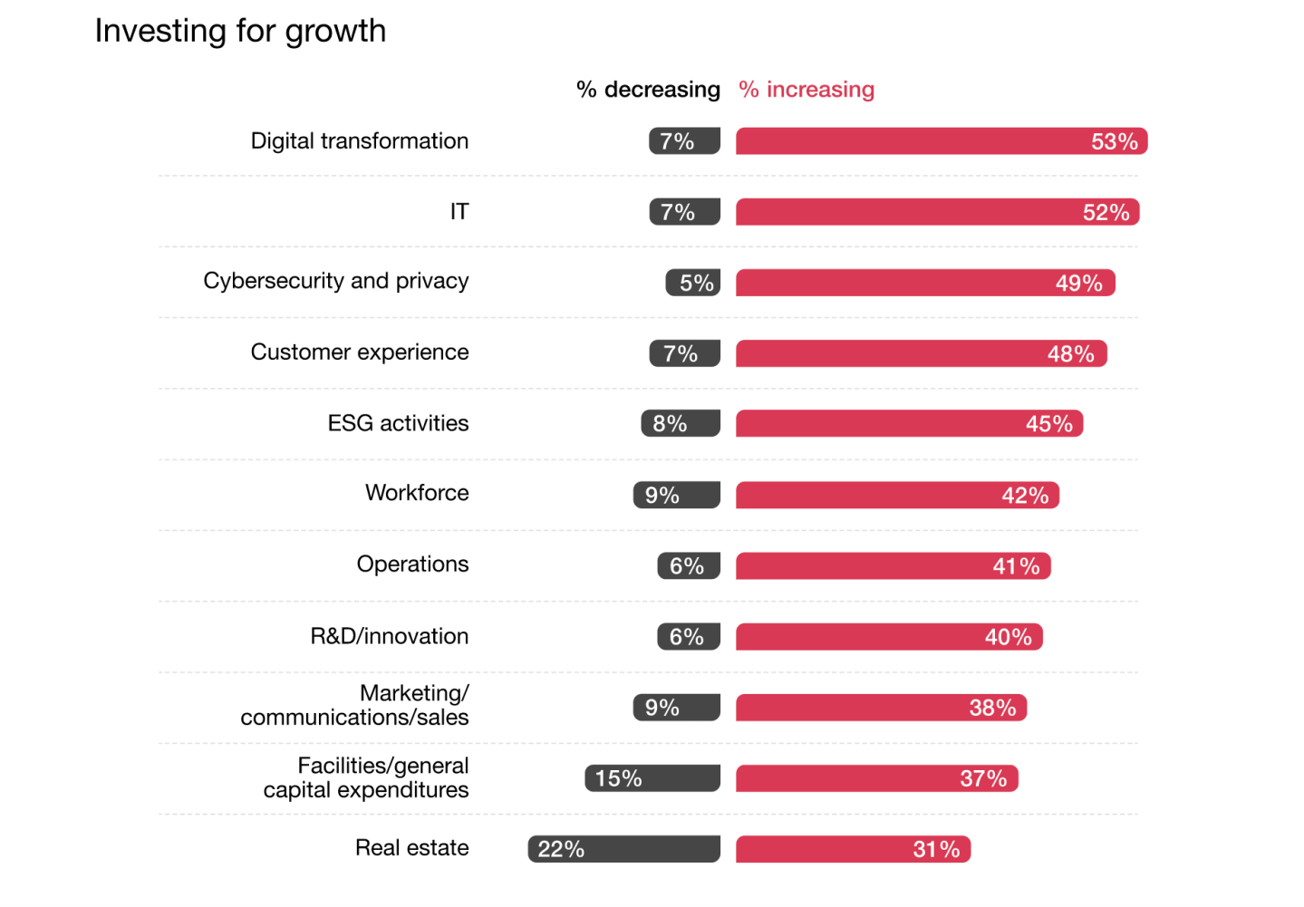 PwC Pulse Survey: Managing business risks found that U.S. business executives view cybersecurity (40%) as the No. 1 business risk facing their companies over the next 12 months. And just 30% see recession as a serious risk. Sixty-two percent of executives think it's likely inflation will remain high. The majority (83%) are focusing the business strategy on growth, which is more than any other objective. When asked what changes their companies are planning to make in the next 12 months about half are increasing investments in digital transformation (53%), IT (52%) and cybersecurity and privacy (49%). And 48% are increasing investment in customer experience. However, 22% of companies are scaling back investments in real estate. This is likely a response to hybrid and remote work, investments in real estate are declining more than any other area of the business, according to PwC. The findings are based on a survey of 722 C-suite leaders, such as CFOs, CHROs, CTOs, COOs and CMOs and other executives, conducted Aug. 1-5.