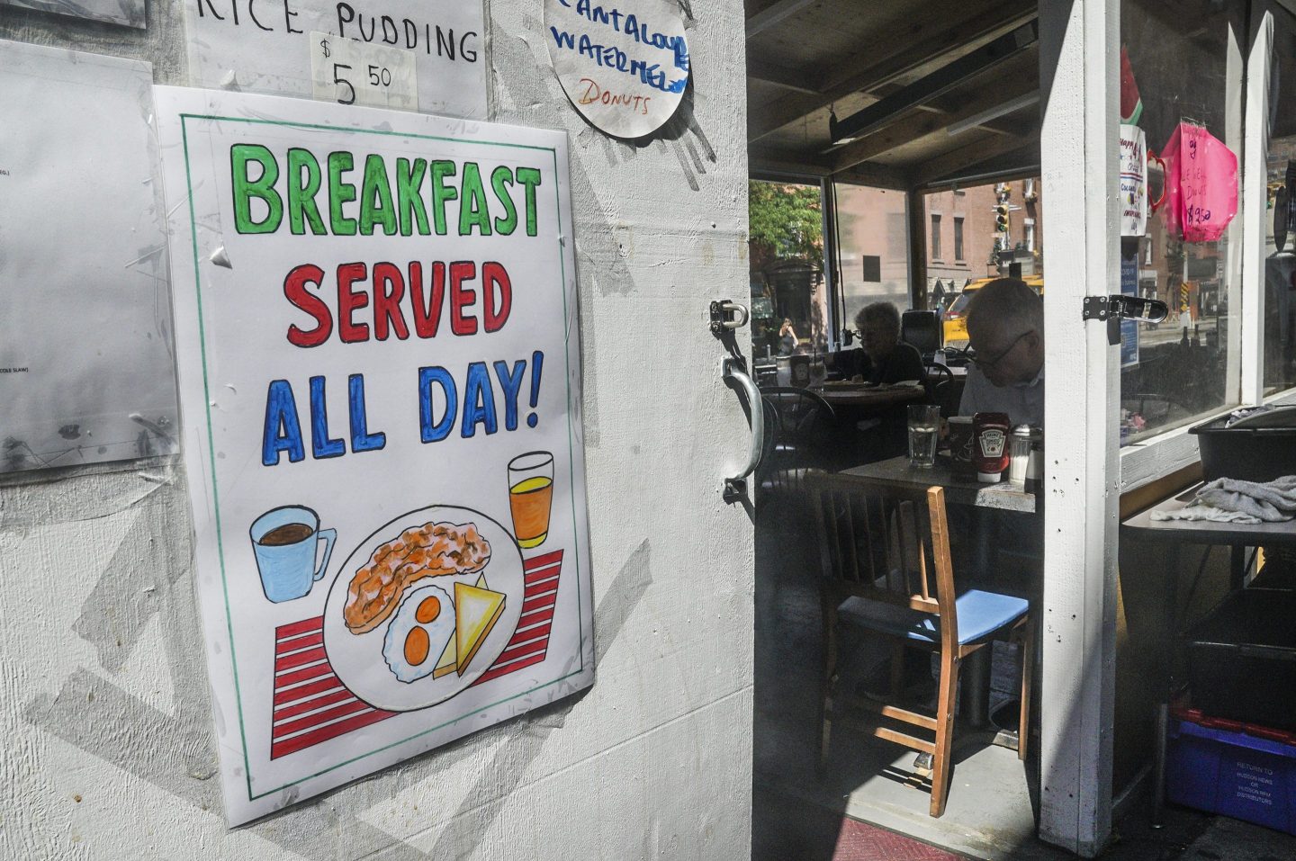 “They have a special touch, so nice and colorful,” said Marina Cortes, manager of the West Village diner La Bonbonniere. The brothers’ “Breakfast All Day!” sign is displayed on the restaurant’s terrace.