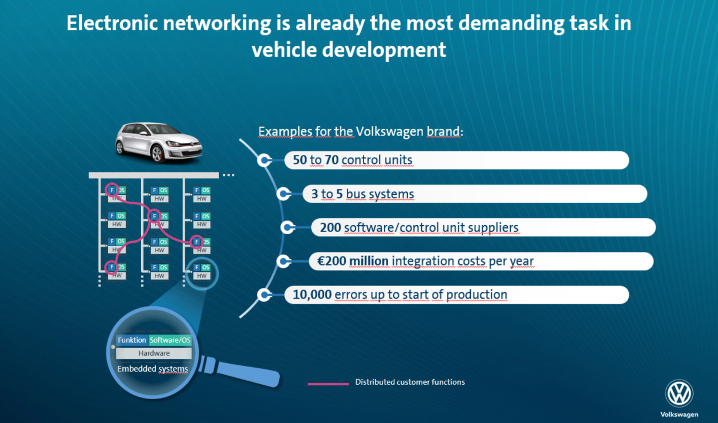 According to an estimate from the Volkswagen brand, however, this did not come without cost. This process included integrating dozens of separately programmed electronic control units and resulted in roughly 10,000 software bugs each time a new model was developed.