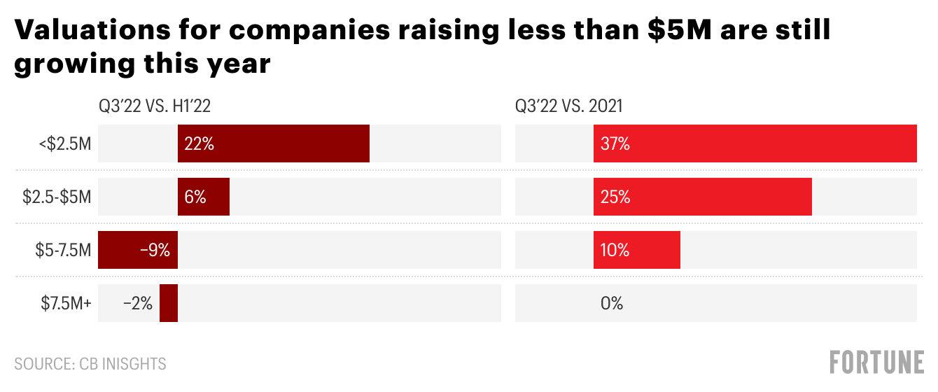 New data released this morning from CB Insights showcases how the caution we’ve been hearing about in the market is very real and is seeping through the cracks into actual numbers. Median tech valuations were down across nearly every stage in the third quarter—to the tune of almost 29% compared to the second quarter of this year, per CB Insights. The impact has been most pronounced on late-stage deals, where the median valuation fell by 50% (womp womp).