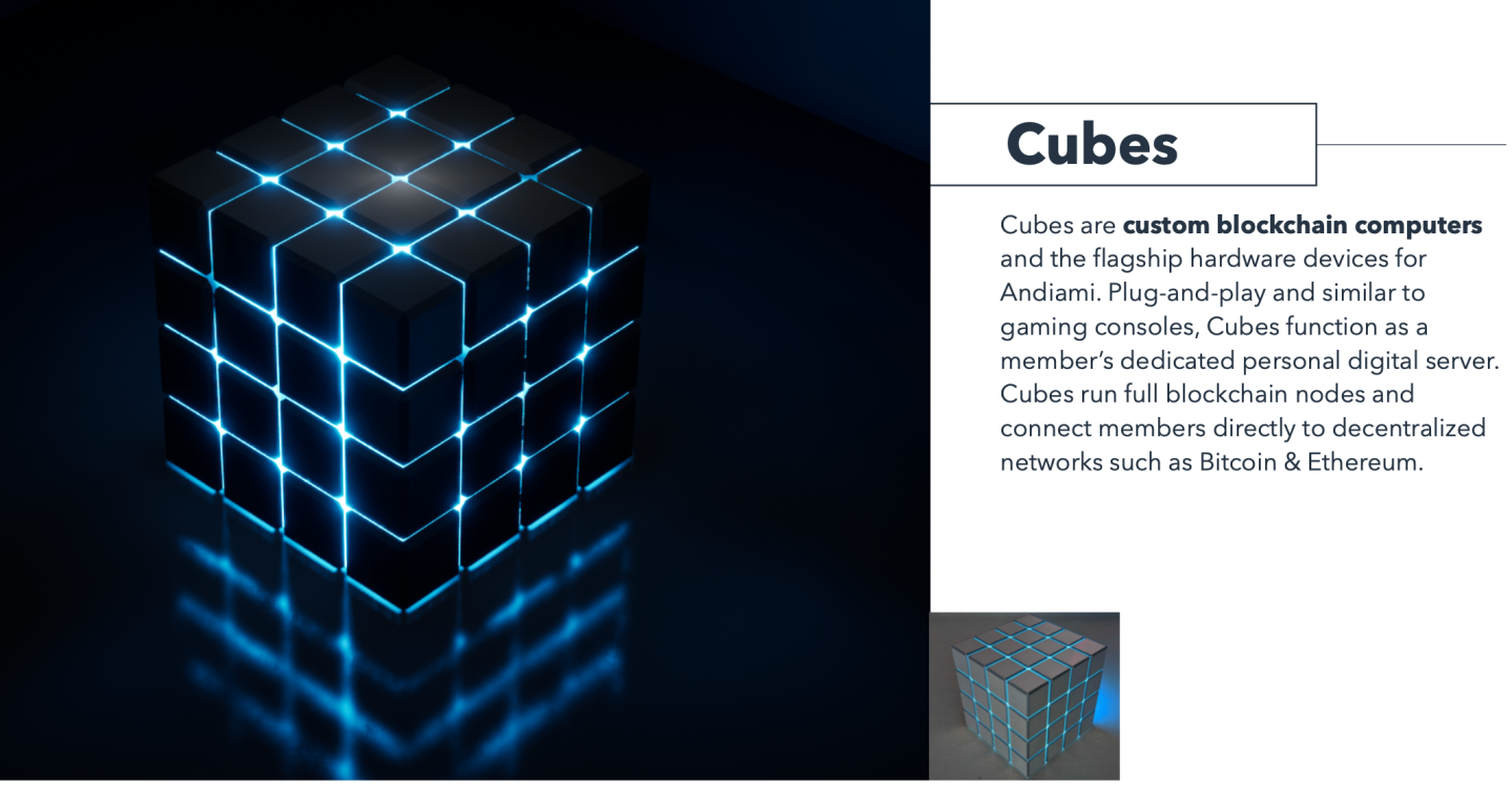 Cube owners will also receive a physical authentication chip that, along with their phones, will serve as proof of ownership and identity—a feature Andiami is calling “NFPs” for Non-Fungible Phygitals.