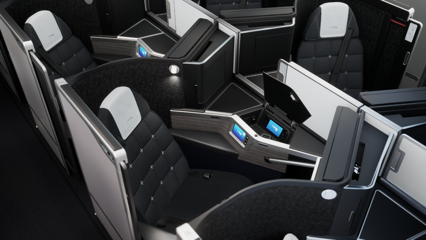 When not working, each suite sports an 18.5-inch, HD screen for inflight entertainment.