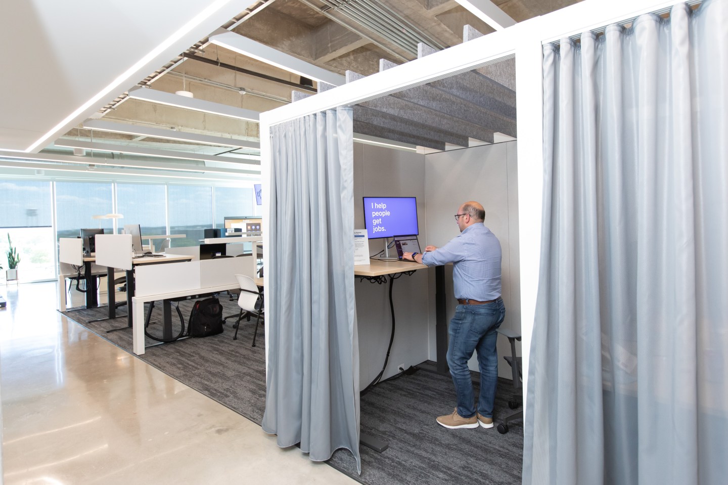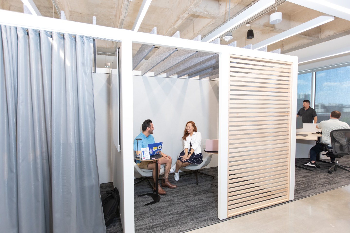 The need for noise management is another insight gleaned from Indeed’s data gathering, which found that although employees meet more often in open spaces than rooms with closed doors, they’re sensitive to sound after years of working from home, where they can better control their surroundings. That’s part of the rationale for Indeed’s movable walls, which Koranteng says provide more separation and an added noise barrier.